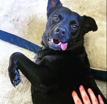 Jemma: The “don’t you dare sneak up on me” queen. Her deafness means she relies heavily on vision. A runner darting past, a cyclist materializing at her side, or even a squirrel dropping from a tree can set her off. Without Titan by her side, she’s calmer — proof that co-reactivity can double your headaches.