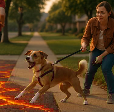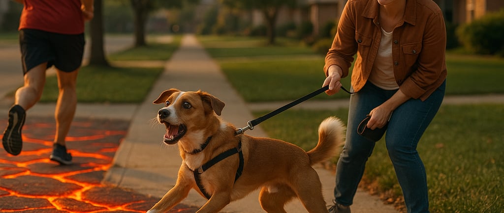 Picture this: you’re strolling along, enjoying the sunshine, maybe humming to your dog like it’s a Disney movie — and then, whoosh — a jogger or bike comes out of nowhere. Your dog launches like a heat-seeking missile, and suddenly you’re sprawled on the sidewalk with a knee that swells to grapefruit size for a week. (Ask Titan. And me. We had to outsource to Wag walkers while I limped it off.)