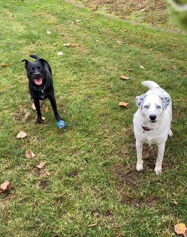 Titan’s best moment? Sitting calmly as strangers passed on an off-leash hike, eyes darting but body still, focused on me with only whale-eyes of concern. Jemma’s magic trick? A gentle hip tap that cues her to snap focus back to me instead of spiraling into a bark-fest.