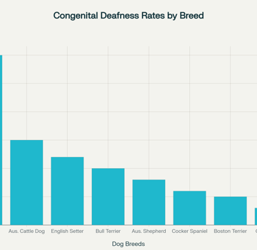 Dalmatians lead the statistics with nearly 30% of puppies born with some degree of hearing loss. This high rate stems from their distinctive spotted coat pattern, which is genetically linked to inner ear development issues. Other breeds with significant predispositions include Australian Cattle Dogs, English Setters, and Bull Terriers.