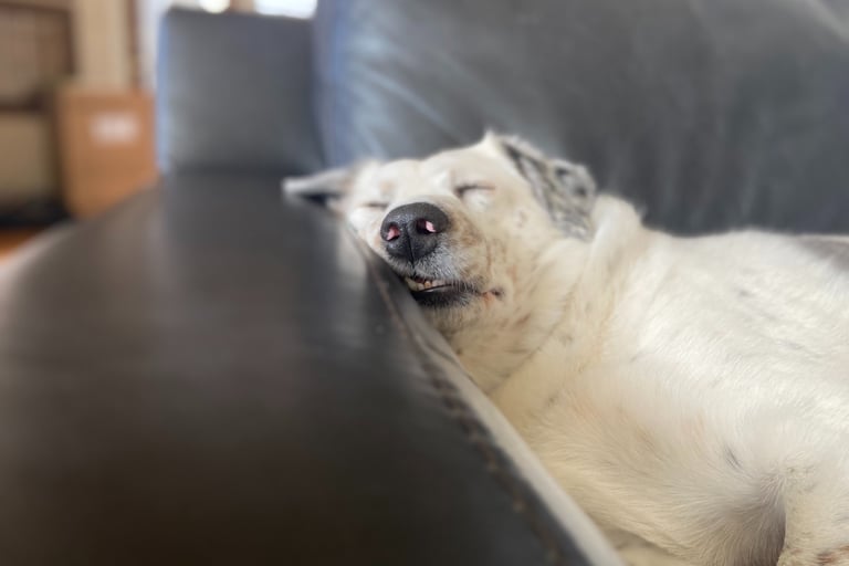 When Jemma first arrived, waking her from sleep was a gamble. She'd sometimes snap reflexively, then immediately look confused—like "why did I do that?" The turning point came when I stopped trying to force calmness and started respecting her need for control. I implemented the smell-first wake-up method: holding a treat near her nose and letting the scent rouse her naturally. Within two weeks, she began waking more peacefully. Within six weeks, I could touch her shoulder mid-sleep and she'd stretch luxuriously before opening her eyes.